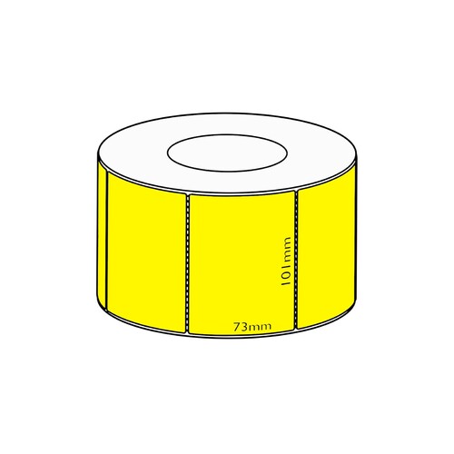 101x73mm Yellow Direct Thermal Permanent Label, 1500 per roll, 76mm core, Perforated