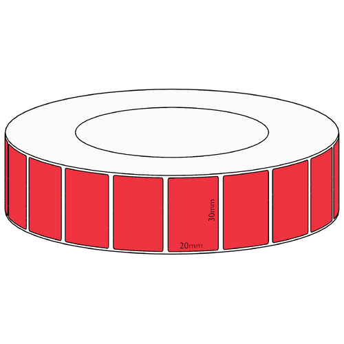 30x20mm Red Direct Thermal Permanent Label, 6500 per roll, 76mm core