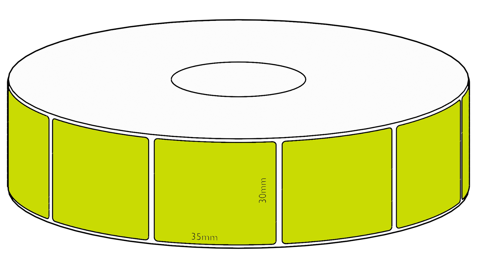 30x35mm Green Direct Thermal Permanent Label, 1300 per roll, 38mm core