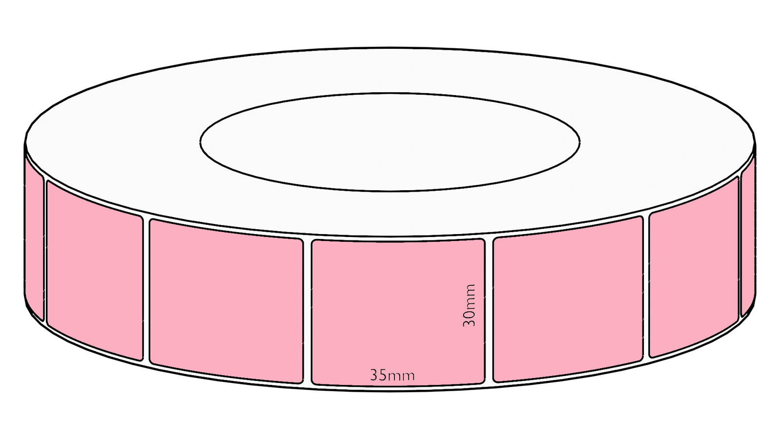 30x35mm Pink Direct Thermal Permanent Label, 3950 per roll, 76mm core