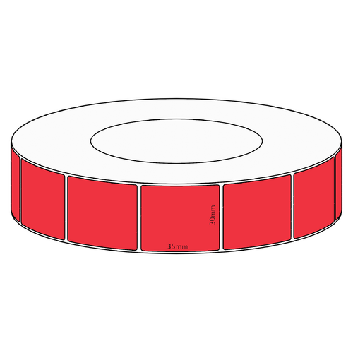 30x35mm Red Direct Thermal Permanent Label, 3950 per roll, 76mm core