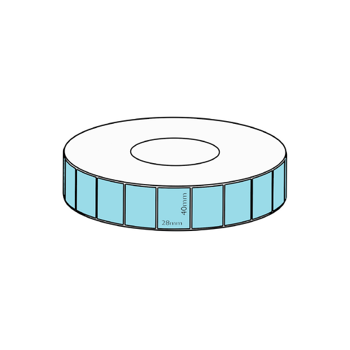 40x28mm Blue Direct Thermal Permanent Label, 4850 per roll, 76mm core