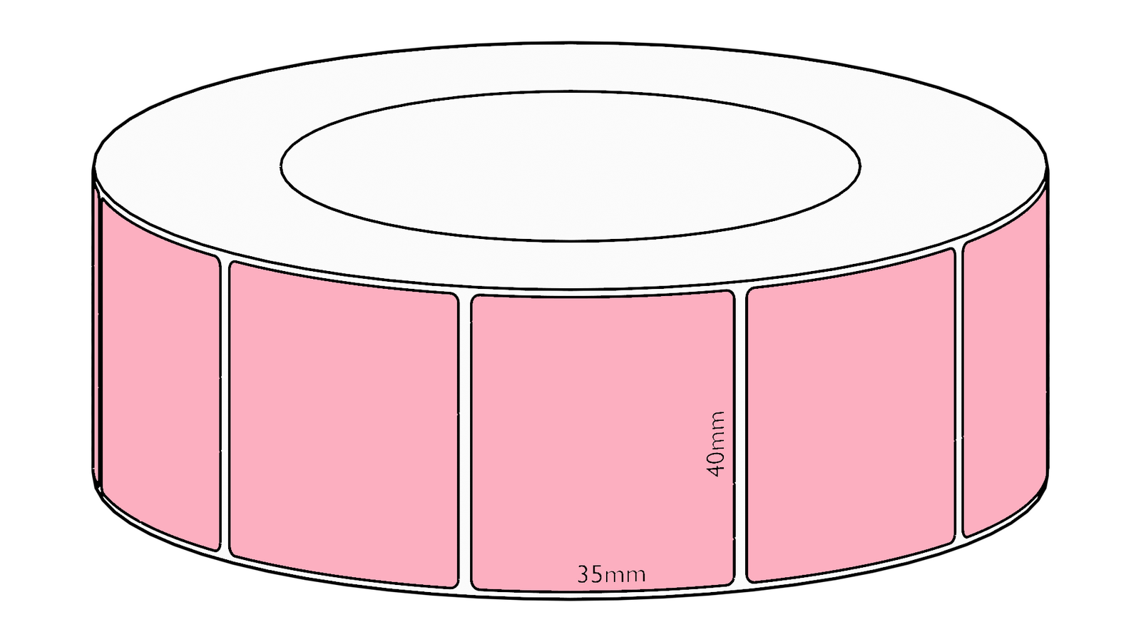 40x35mm Pink Direct Thermal Permanent Label, 3950 per roll, 76mm core