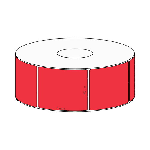 45x55mm Red Direct Thermal Permanent Label, 850 per roll, 38mm core