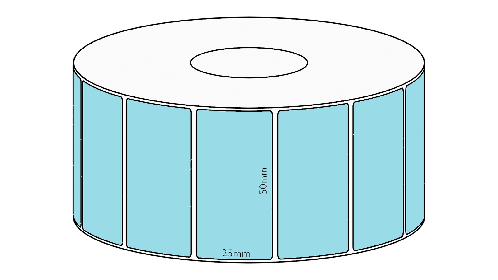 50x25mm Blue Direct Thermal Permanent Label, 1800 per roll, 38mm core