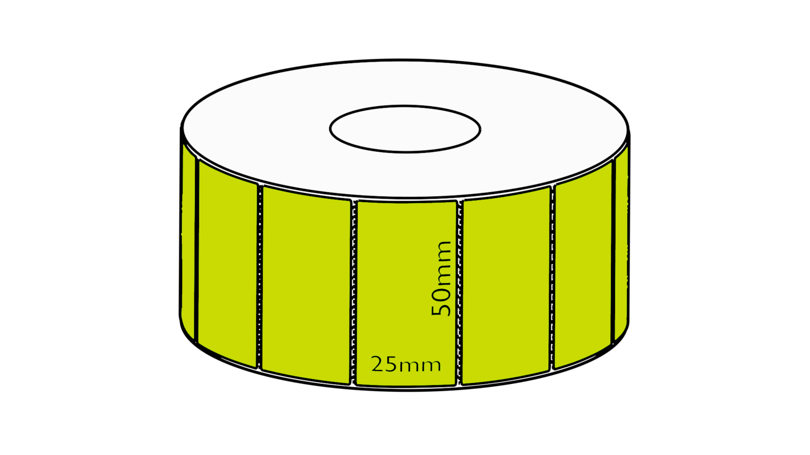 50x25mm Green Direct Thermal Permanent Label, 2000 per roll, 38mm core, Perforated