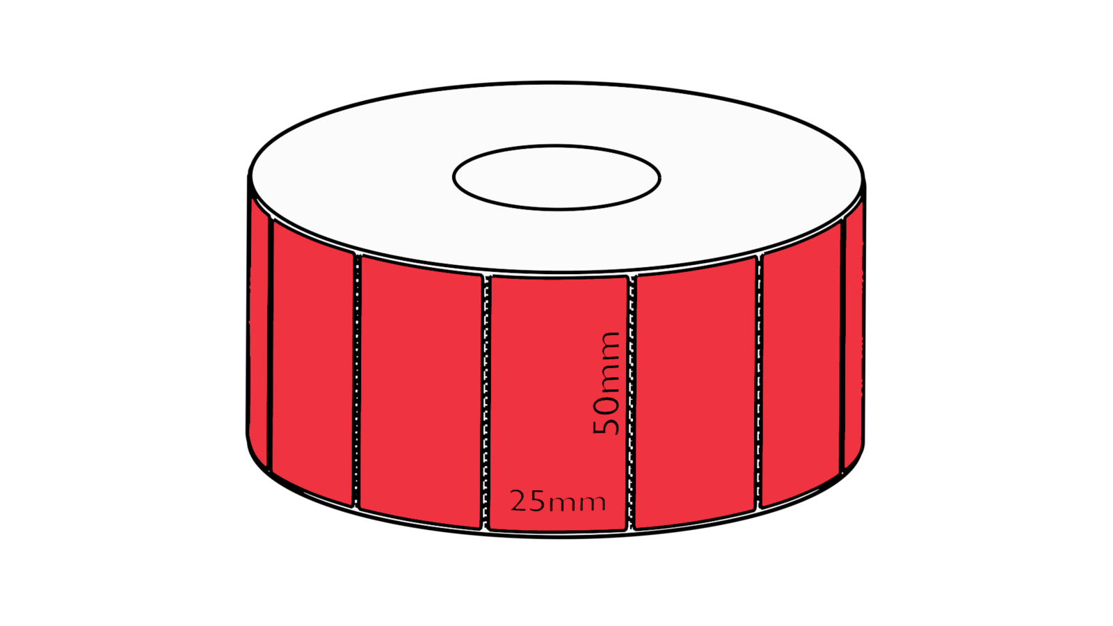 50x25mm Red Direct Thermal Permanent Label, 2000 per roll, 38mm core, Perforated
