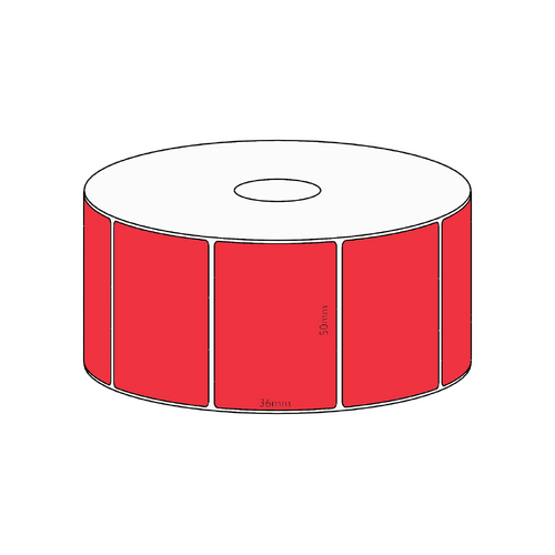 50x36mm Red Direct Thermal Permanent Label, 1300 per roll, 38mm core