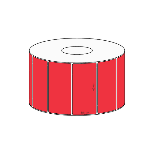 65x30mm Red Direct Thermal Permanent Label, 1500 per roll, 38mm core