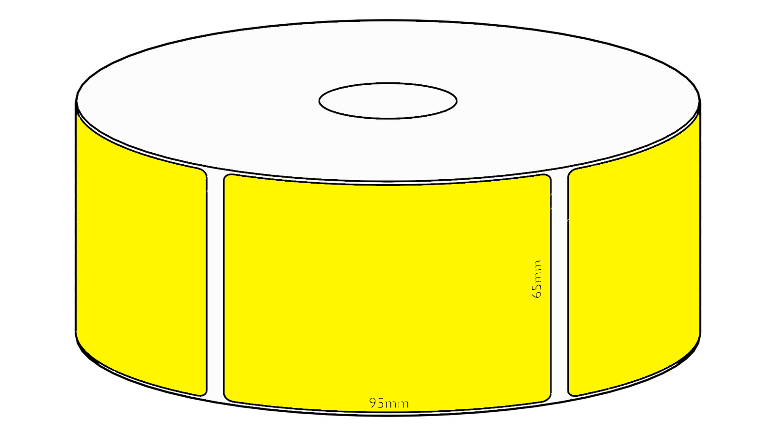 65x95mm Yellow Direct Thermal Permanent Label, 500 per roll, 38mm core